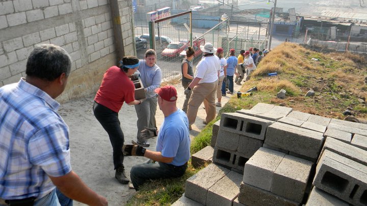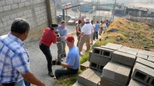This morning we all piled into buses to go to the same site where we unload cinder blocks up a mountain. It is definitely a wonderful moment (although hard work) to see 30 people working together in a line up a mountain….watching out for each other, cheering each other, chiding each other. As someone pointed out, each of us get to touch each brick of Dona Felicita´s house…how cool is that?!