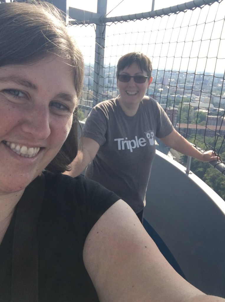 For our first Christmas together in 2017, Ana gave me a lovely card and inside was a voucher for a hot air balloon ride. It is a pretty touristy endeavor here in Berlin. It is for this balloon that goes straight up in the middle of one of the most touristy spots in Mitte. It is huge and we have seen it from afar. I was completely delighted for this gift. Obviously we couldn’t use it in December but I knew I could hold onto it until a better weather day. When I moved here to Berlin in May of 2018, I was eager to get up into that balloon but every time we checked to see if the balloon was flying it seemed to be too windy, too cold, too full of weather and the balloon wasn’t going up. We kept forgetting about our voucher. We would remember every once in a while on a free day and both look up….hot air balloon day? And we would rush to the computer or phone to discover it wasn’t flying that day either. This happened again and again but last week at the end of our Staycation I yelled out, “Balloon!” I rushed to my computer to see that YES IT WAS FLYING! Let’s go!