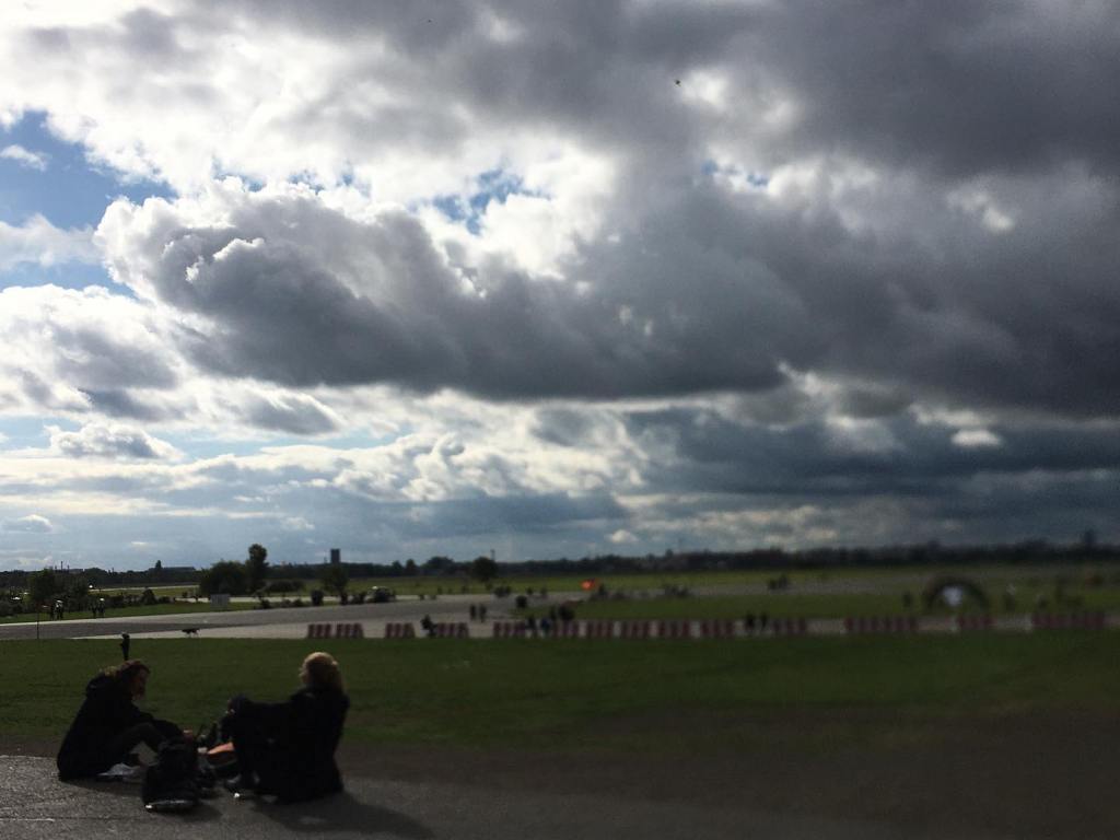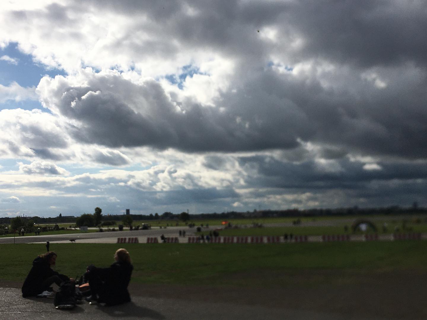 On Sunday we took our pups to Templehofer feld midday. This is a HUGE park about a 20 minute walk from our place that used to be an airport. The runways and the structures are still on the field but the surroundings have been converted into park land. We like to take the dogs to the dog park in the middle of the field. It is huge and fenced and the pups love it. They needed to run and there were lots and lots of pups out for them to play with. There is also a biergarten, a community garden area and just lots of wide open space. It really is amazing space in the middle of the city.