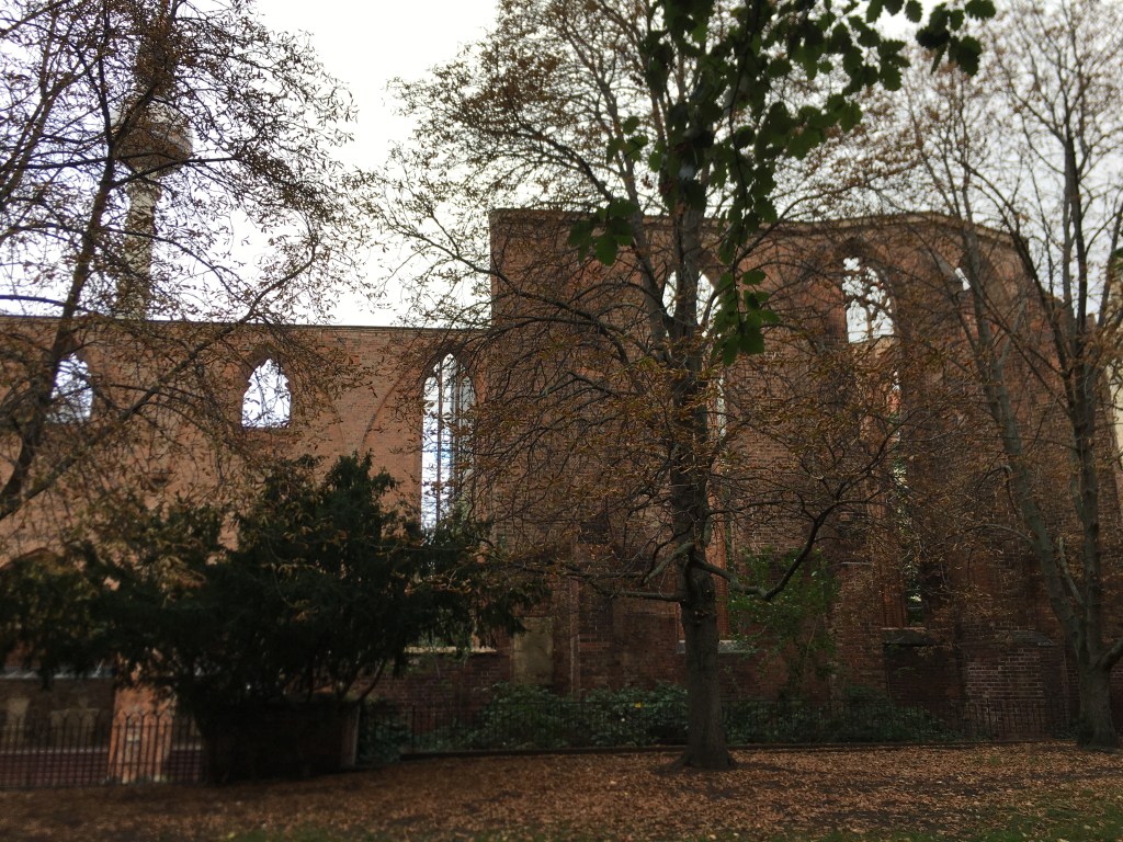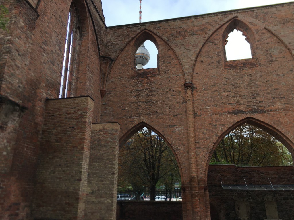 After spending time inside I wandered out into the partly cloudy but sunny for a moment but chilly outside. I still had lots of time in my day and I have recently read about something curious. Supposedly there is a Klosterkirche Ruin site in the middle of Mitte. I wanted to see this. It has been on my list and appeared there fairly recently. It was a short bus ride away in an area of the city that I have actually spent quite a bit of time traveling through, Alexanderplatz area. This is a more touristy area and also more commercial in some ways. The largest mall type stores are here. So I set out.