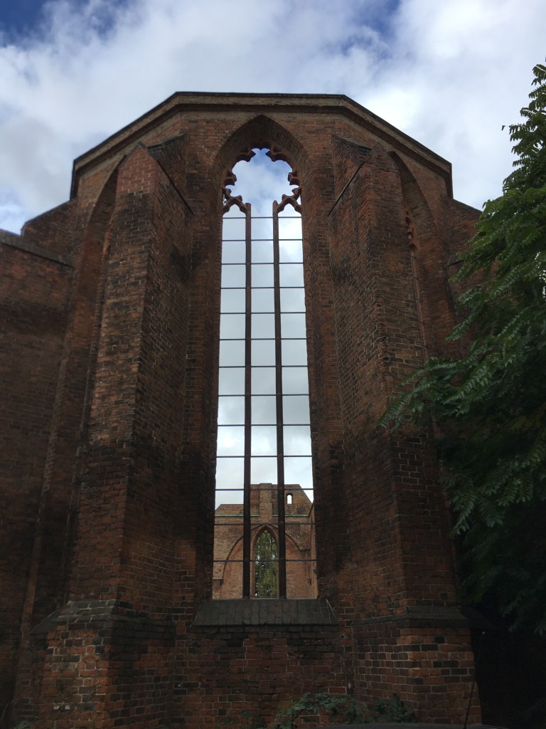 Founded in 1250 this monastery was a church for Franciscans monks. It is called the Franziskaner Klosterkirche. The remains sometimes display art and can be seen all the time. Sometimes the ruins are open but today they were closed to the inside of them but I could walk around in amazement. Just across the street are hotels and giant stores and so much traffic and construction. I couldn’t believe it. If I looked one way I saw these beautiful bricks and alcoves while if I turned the other it was commercial and metal. I have been close to here probably hundreds of times and had no idea until today that this was here. They were beautiful and I am so glad I found them, these old ways in which so many prayed and walked and meditated. In this city there are few places that feel so sacred.