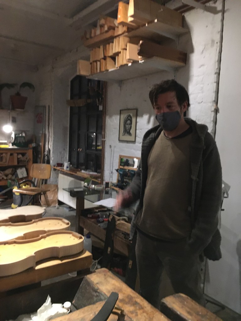 I got to hold each piece in my hand and think about the many hours that went into the wood, the inlay, the carving, the curvature, the tone that would eventually come out of these pieces and how they would be played. He even told me about choosing varnish, how to make the bridge, and how to continuously work with the wood at each step.