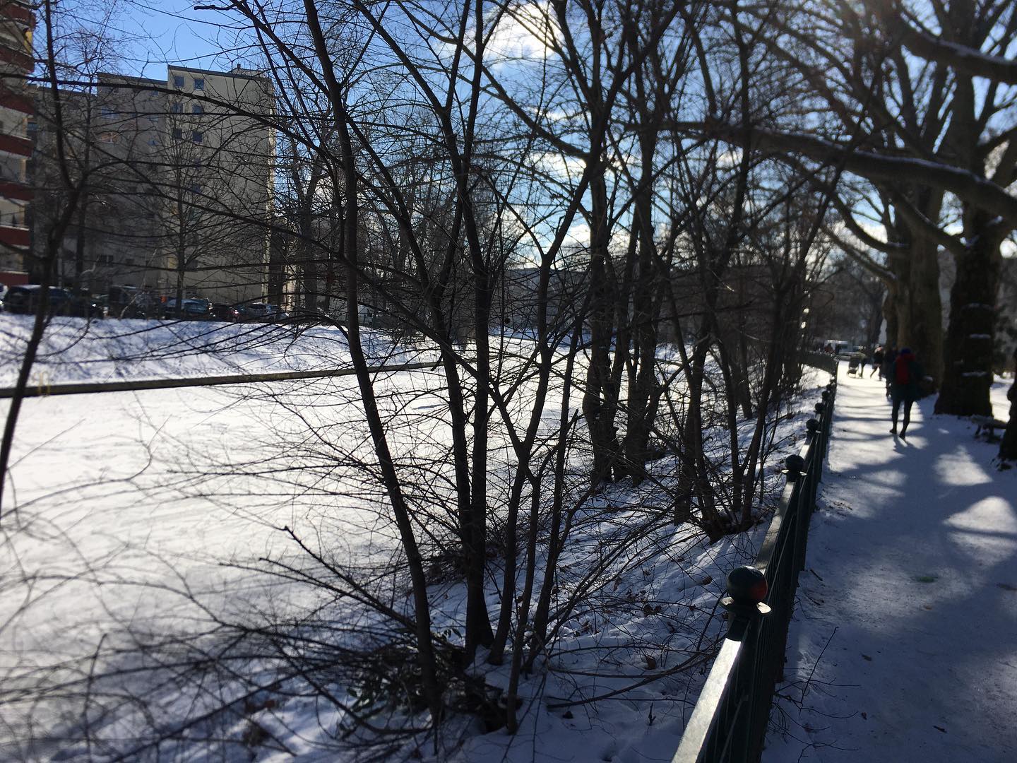 This week we have continued enjoying the snow and especially loving when the sun decided to arrive as well. True, it was crisp outside but we bundled up in layers to play around. Our husky is loving every bit of it. Just today, the temps started to warm up a little and the snow became slush. The canal froze over and people are so desperate for something different that they threw caution to the wind and pulled out ice skates and sleds to wander on top of the water. We saw hockey games and full picnics on the ice. We waved to our neighbors and slid along the path whichever path we chose.