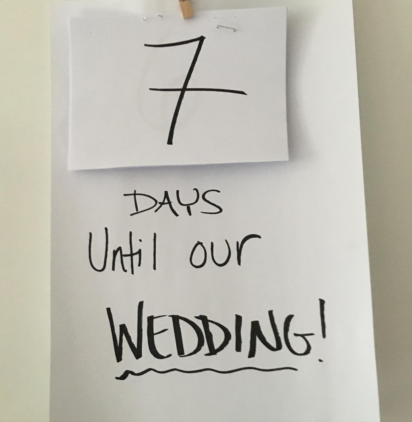 We made a countdown that hangs in our kitchen. It began in the 30 day range and this morning when Ana, with flare, pulled of the day it revealed that we are a week out from our wedding day! It is all coming together. We are spending a lot of time talking through what needs to be done and the logistics to get there but whenever I get a bit overwhelmed Ana says, “Remember, two months ago we couldn’t have a celebration. This is all bonus.”