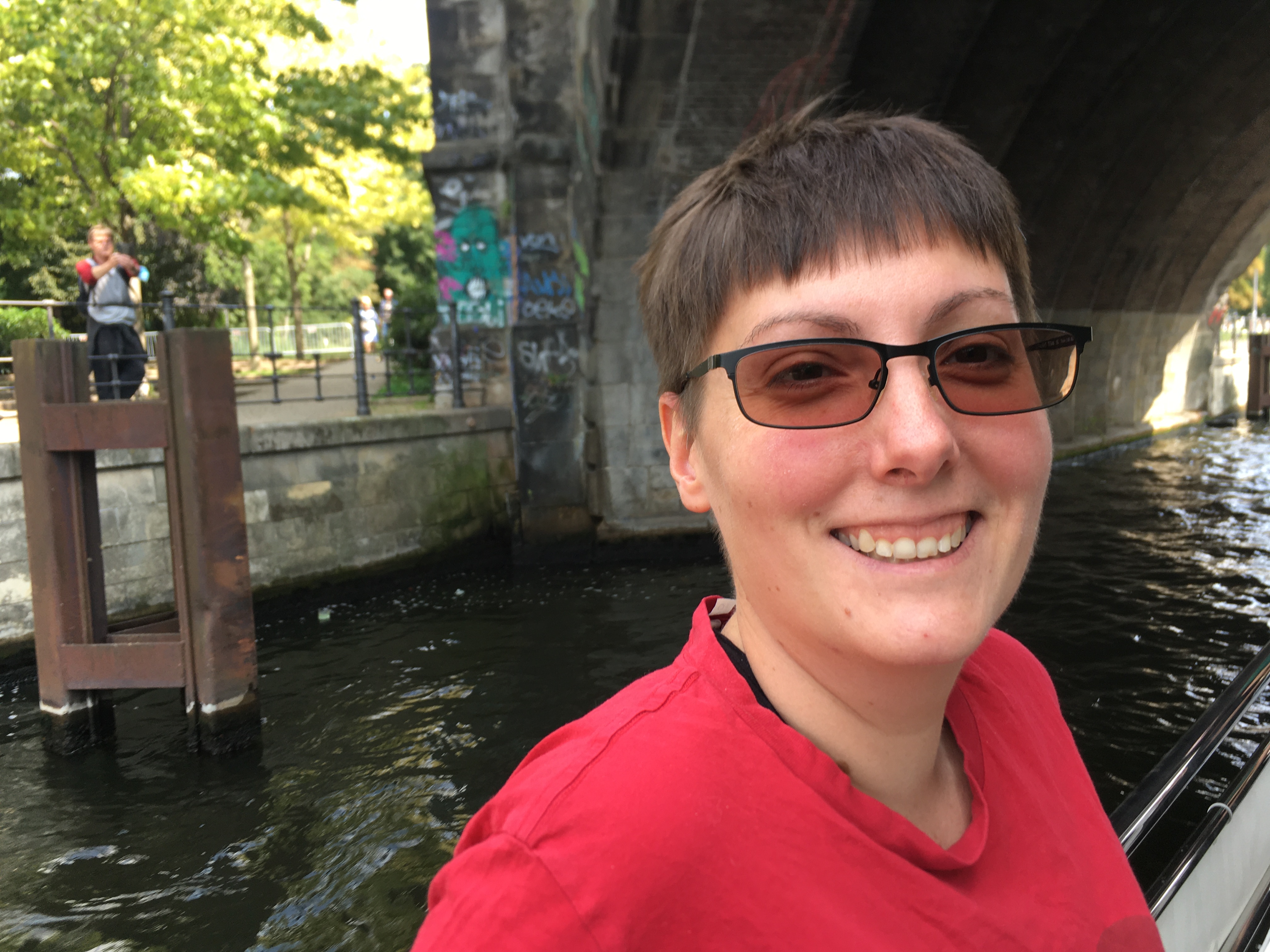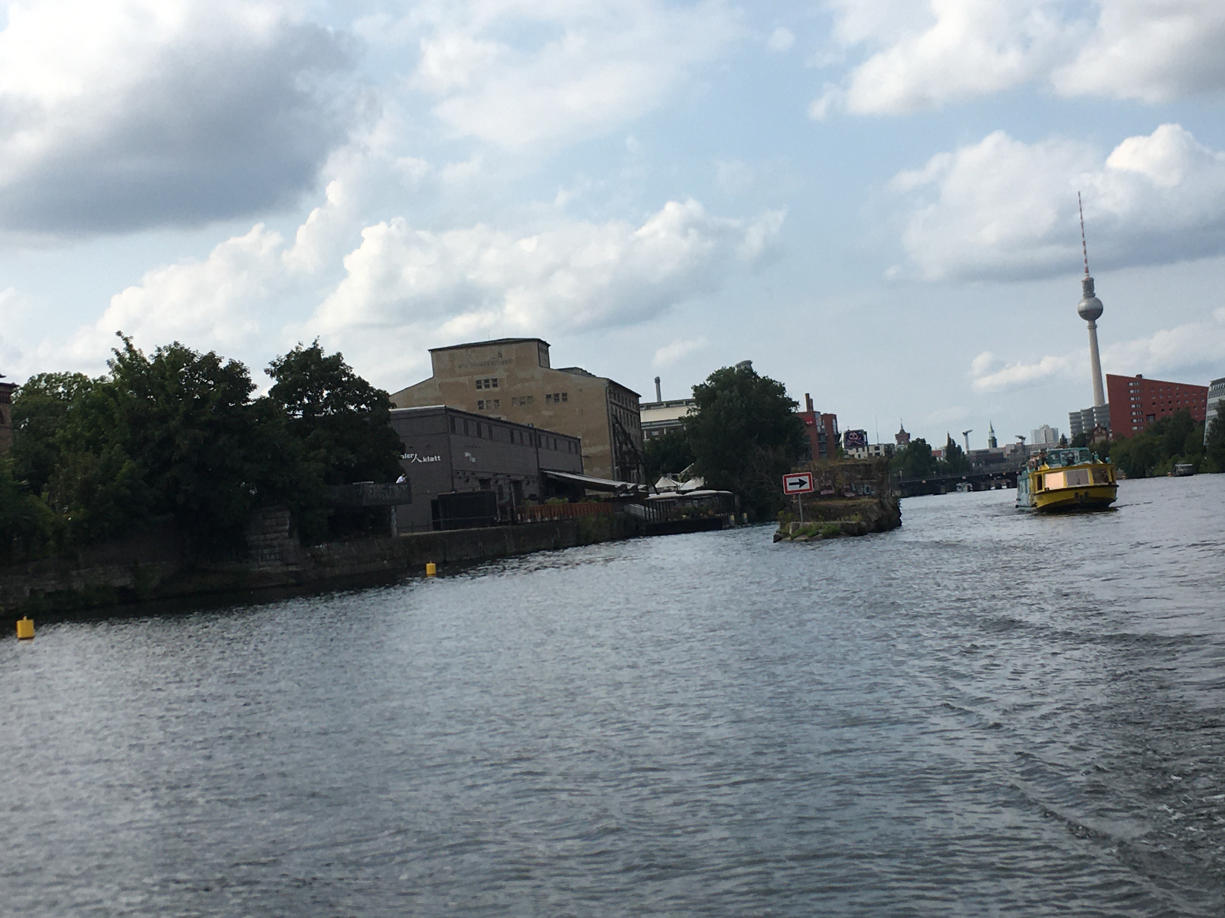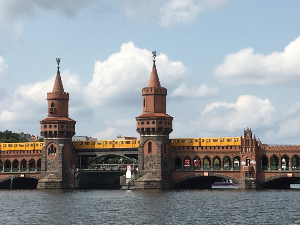 But yesterday, the sun came out and hit a nice 75 degrees, hotter if you stood directly in the sun for some time. I had an idea a few weeks ago to book yesterday as a surprise date for Ana, praying that it would be a perfect day to be outside all day. I booked a boat ride that was longer down the Spree than the quicker touristy-ier boat rides in Mitte. This boat was a solar catamaran and would greet us aboard with a glass of bubbly. I bought the tickets and put the time frame in our shared Google calendar. A few days before I told her what we were up to so that we could prepare.