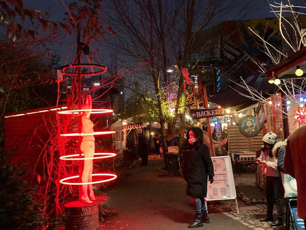 For number 7 we decided, on a random Thursday afternoon which looked like evening to go to a market we have enjoyed in the past. The Heisse Holz Markt is near Ostbahnhof and is in a very cool little complex that on a normal day is awesome to hang out at with cute shops and cafes and an outdoor bar. During Christmas Market time it adds awesome stands, yummy gluhwein and fires all over to keep us all warm. This year it seemed smaller and not as cool but still very awesome ambiance. We enjoyed our warm beverages and then headed home to warm up.