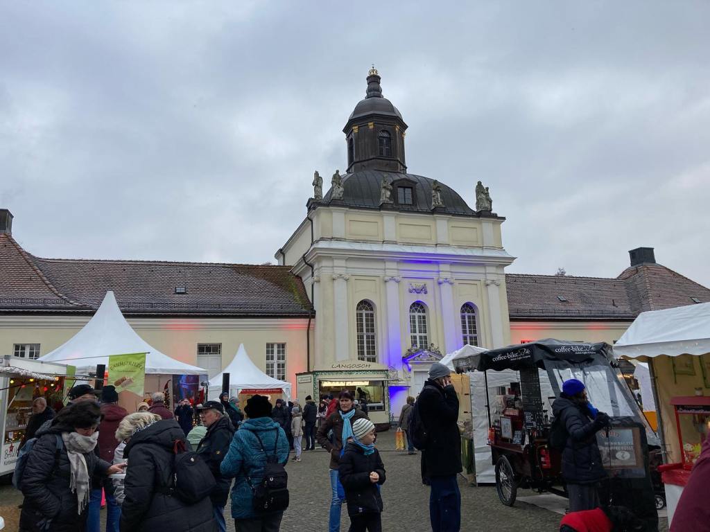 This market and experience did not disappoint! It was great! This one is quickily becoming one of my favs of the season. Very tradtional German Christmas marketty with all of the offerings you would hope for…warm beverages, sausages, the marizpan stall (I am a sucker for marzipan), the cute mugs, stalls of handicrafts and Langosh, signs about all the other yummy trad foods you can eat like ZweibelKuchen and Baumkuchen, and places to wander around a palace. What more could we want? We spent time here and around the old city of Kopenick before we couldn’t feel our toes and decided it was time to find the bus home. That took longer than we wanted BUT we wouldn’t trade our experience!