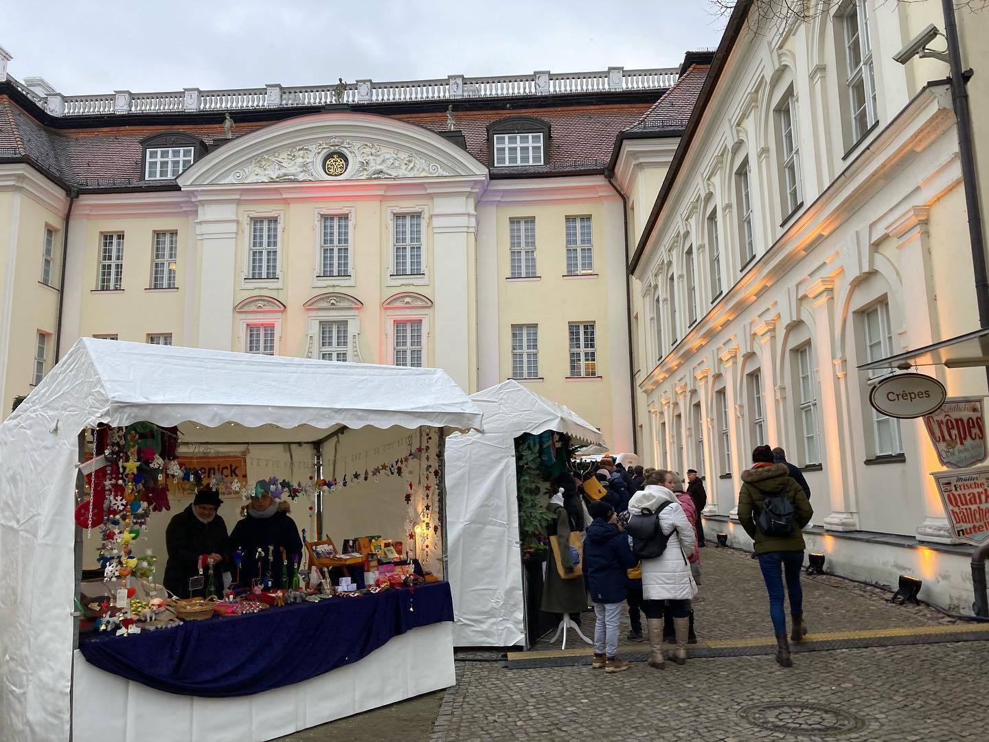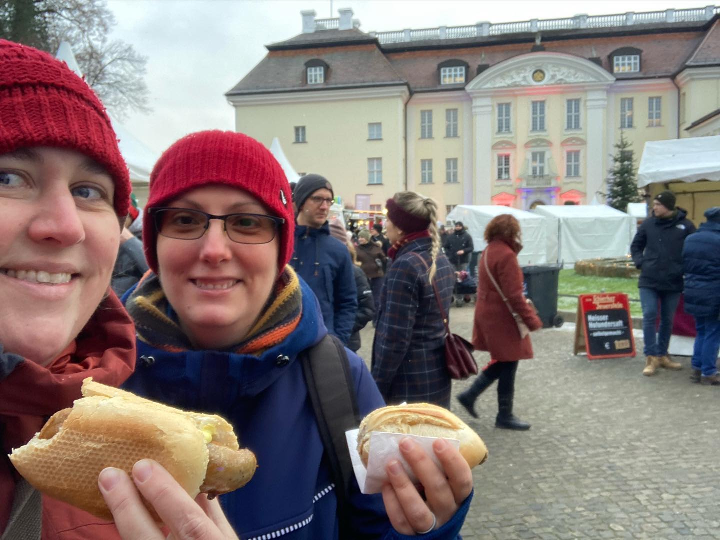 This market and experience did not disappoint! It was great! This one is quickily becoming one of my favs of the season. Very tradtional German Christmas marketty with all of the offerings you would hope for…warm beverages, sausages, the marizpan stall (I am a sucker for marzipan), the cute mugs, stalls of handicrafts and Langosh, signs about all the other yummy trad foods you can eat like ZweibelKuchen and Baumkuchen, and places to wander around a palace. What more could we want? We spent time here and around the old city of Kopenick before we couldn’t feel our toes and decided it was time to find the bus home. That took longer than we wanted BUT we wouldn’t trade our experience!